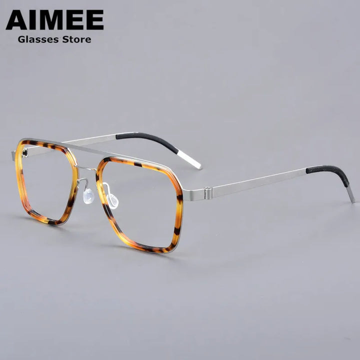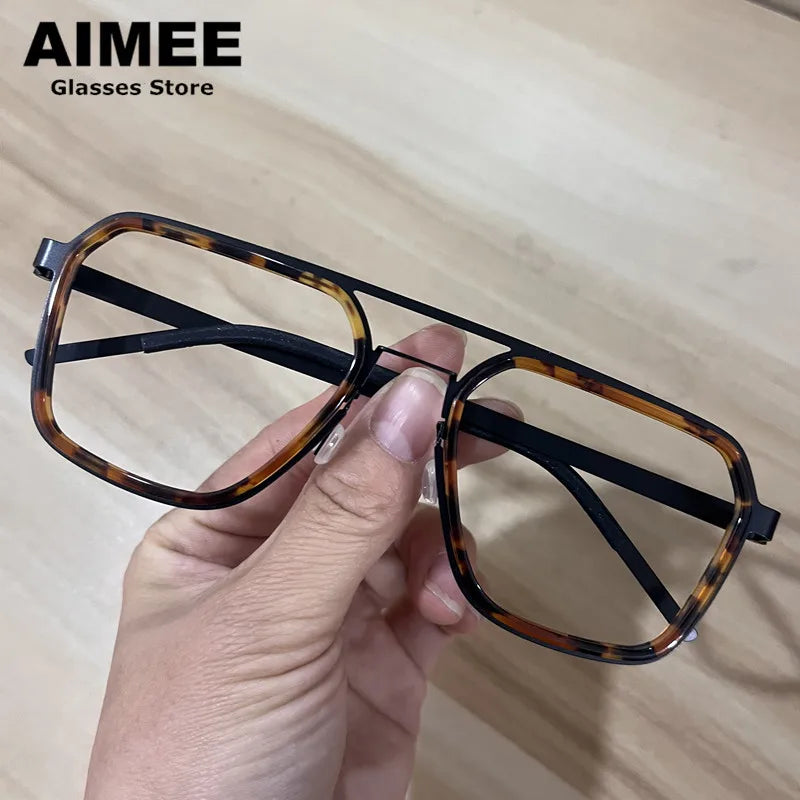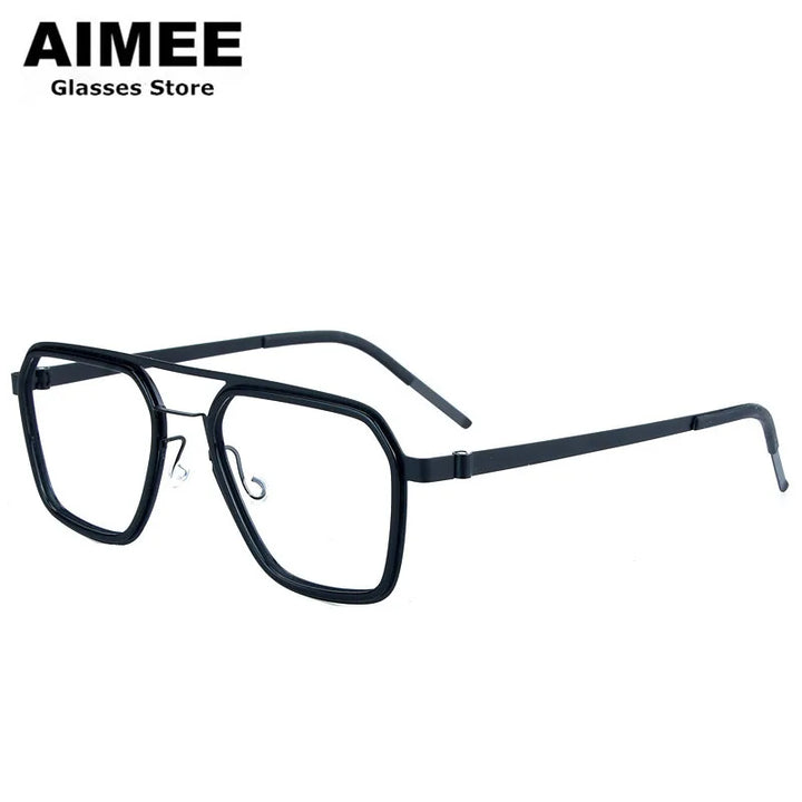 Experience style and functionality with the Aimee Unisex Full Rim Square Double Bridge Titanium Acetate Eyeglasses, model number 19753. Crafted to suit everyone, these glasses combine durability with a sleek design, making them a perfect accessory for any occasion.