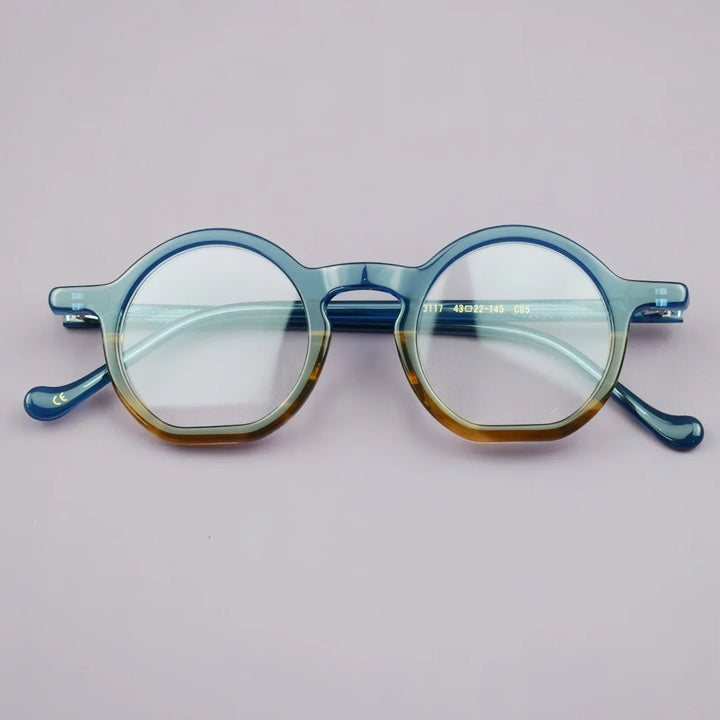 Introducing the Hewei Women's Full Rim Flat Bottom Round Acetate Eyeglasses, model number 913722. Designed for the modern woman, these eyeglasses combine style, comfort, and durability. Made from high-quality acetate, they offer a lightweight feel while ensuring a robust frame that lasts.