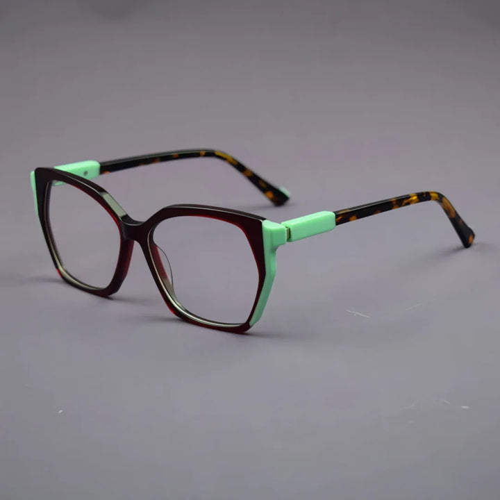 Introducing the Hewei Women's Full Rim Polygon Cat Eye Acetate Eyeglasses, Model Number 96103. These stunning cat-eye glasses are designed to make a bold fashion statement while providing excellent visual clarity.
