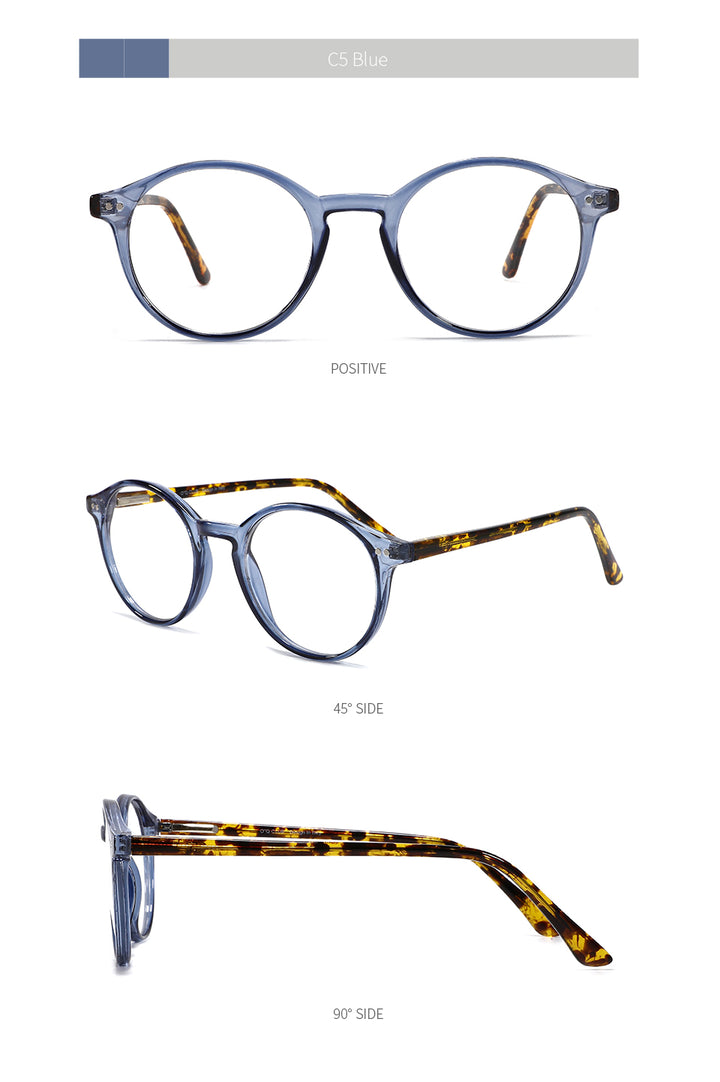 Featuring a trendy round shape and a sleek acetate titanium frame, these eyeglasses are perfect for both men and women. The frame material is a combination of high-quality plastic and titanium, ensuring long-lasting wear.