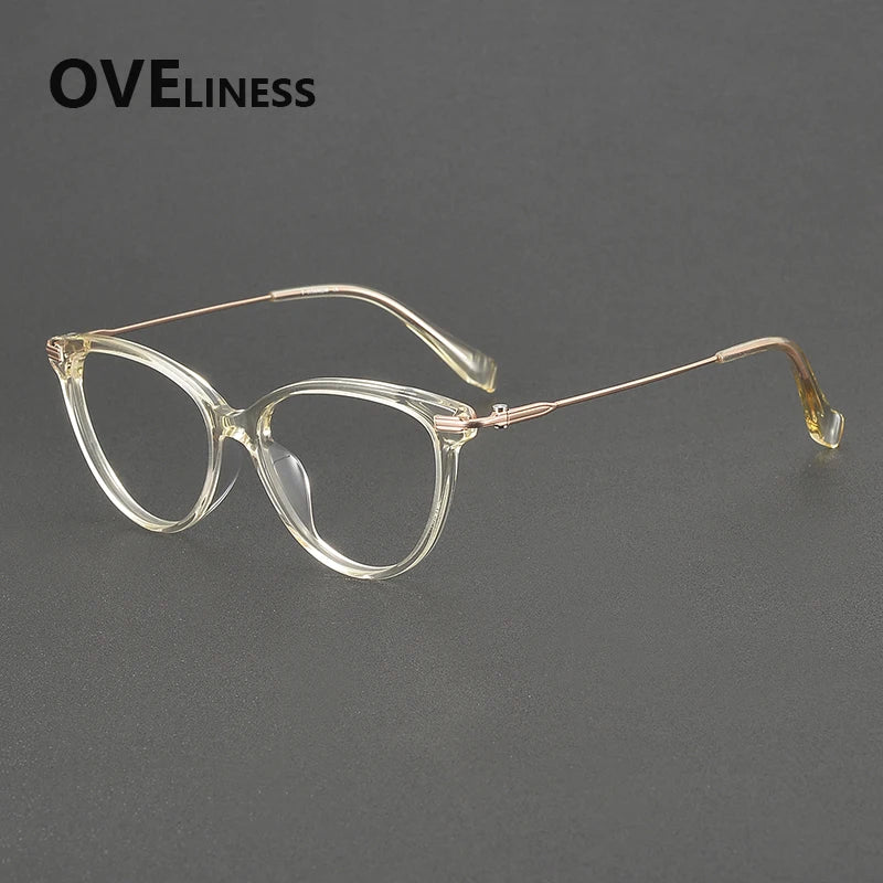 Introducing the Oveliness Women's Full Rim Oval Cat Eye Acetate Titanium Eyeglasses (Model Number: 900001), the perfect blend of style, sophistication, and durability. Crafted for the modern woman, these eyeglasses not only elevate your look but also offer exceptional comfort and quality.