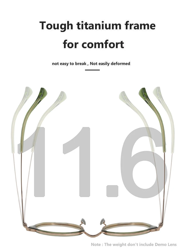 Crafted from a blend of titanium and acetate, this frame offers the perfect balance of strength and comfort. The material combination not only provides resilience but also ensures that the glasses remain lightweight, making them comfortable for all-day wear.