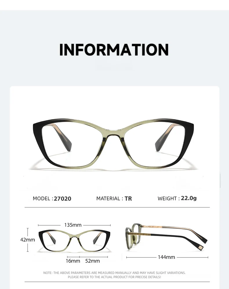 With a frame width of 135mm, these glasses are designed specifically for women, offering a flattering fit. The lens dimensions are also impressive, with a height of 42mm and width of 52mm, allowing for a clear and expansive viewing experience. You can confidently read your favorite novels or work on important documents knowing that you are supported by reliable eyewear.