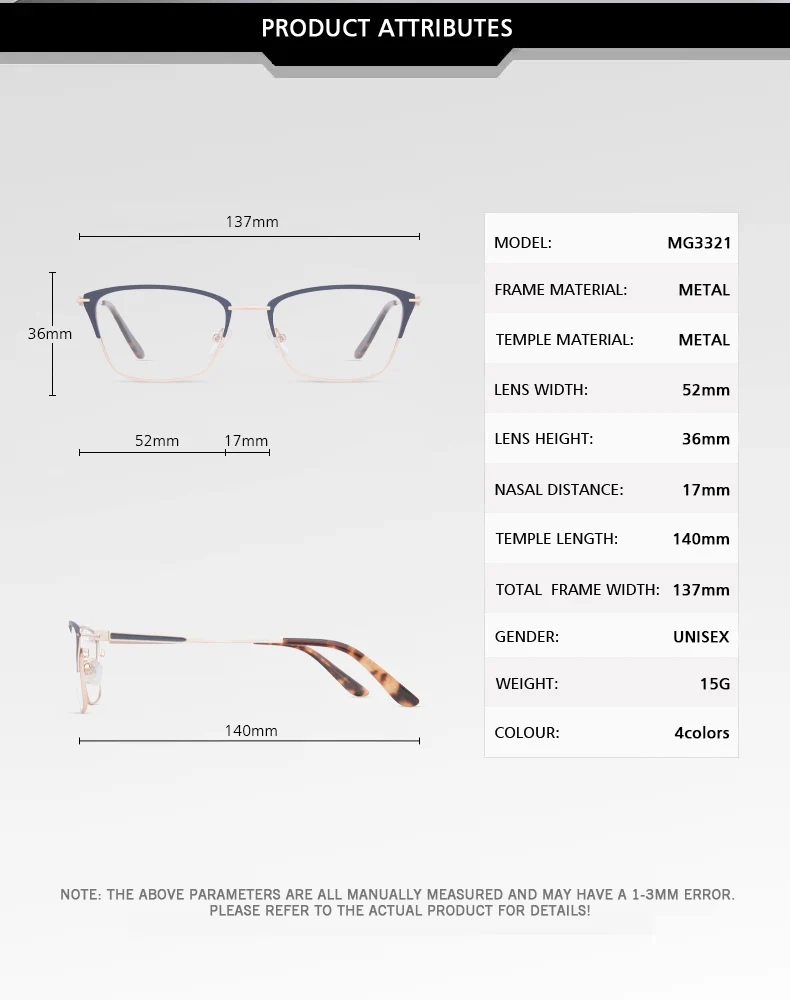 With a frame width of 137mm, these reading glasses provide a perfect fit for most women. The lens dimensions of 52mm (width) and 36mm (height) offer excellent visibility to enhance your reading experience.