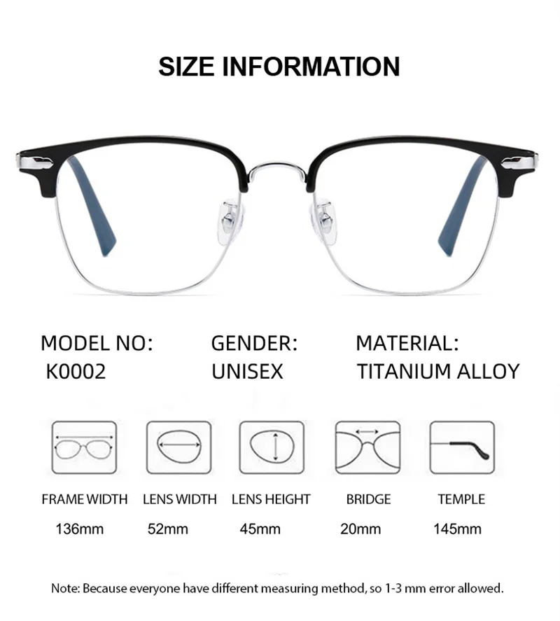- High-Quality Material: Crafted from durable titanium-alloy, these eyeglasses ensure longevity and resilience, making them ideal for everyday wear.
