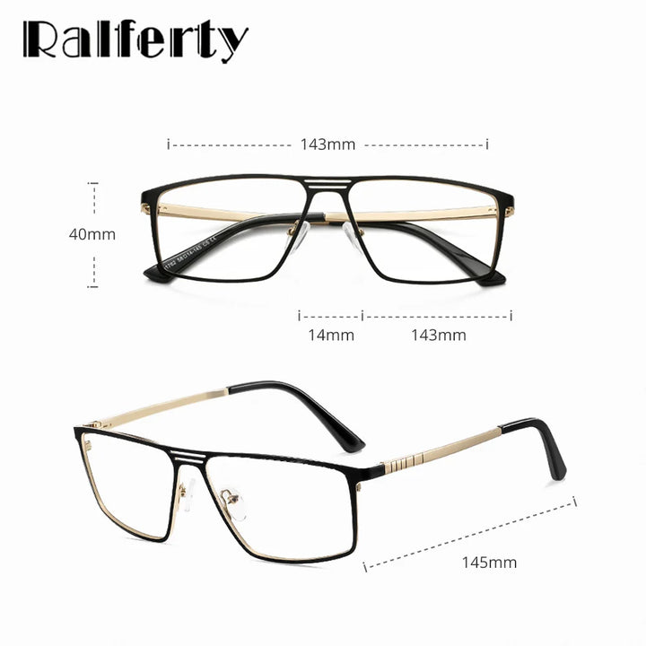 Introducing the Ralferty Men's Full Rim Square Double Bridge Alloy Eyeglasses, model number 91762. These eyeglasses perfectly blend style and function, making them an ideal choice for the modern man.
