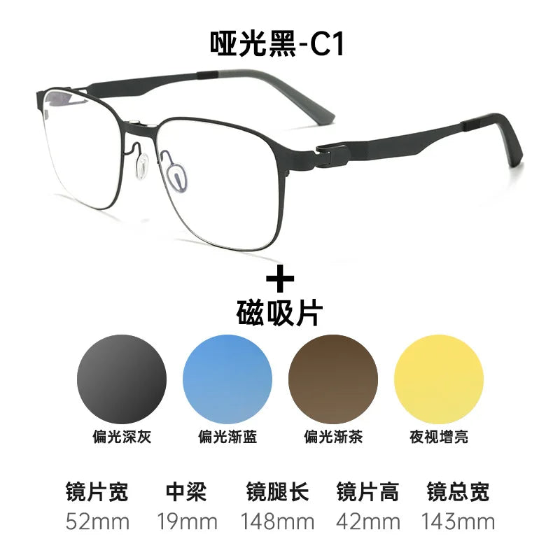 Introducing the Reven Jate Unisex Full Rim Square Titanium Eyeglasses Clip On Sunglasses, model number 668868. Designed for both men and women, these stylish eyeglasses feature a unique clip-on system that incorporates magnetized polarized sunglasses. Perfect for those who need versatile eyewear, you can easily switch to night vision yellow sunglass clips depending on your environment.