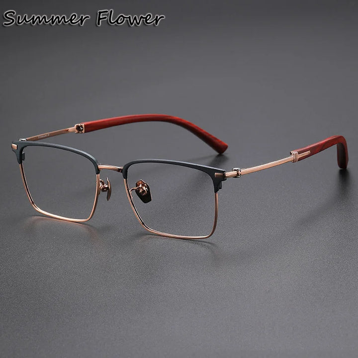 Introducing the Summer Flower Men's Full Rim Polygon Square Titanium Eyeglasses, model number 612340. Designed for sophisticated and modern men, these eyeglasses stand out with their unique polygon square shape, making them perfect for both casual and formal occasions.