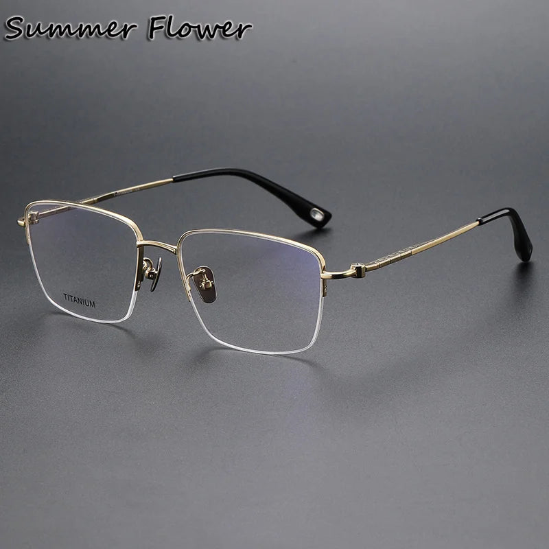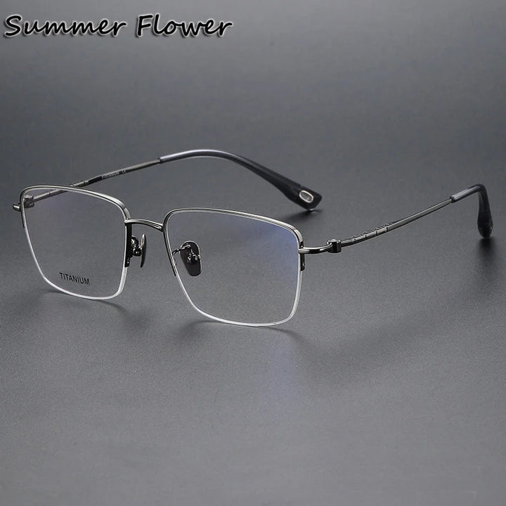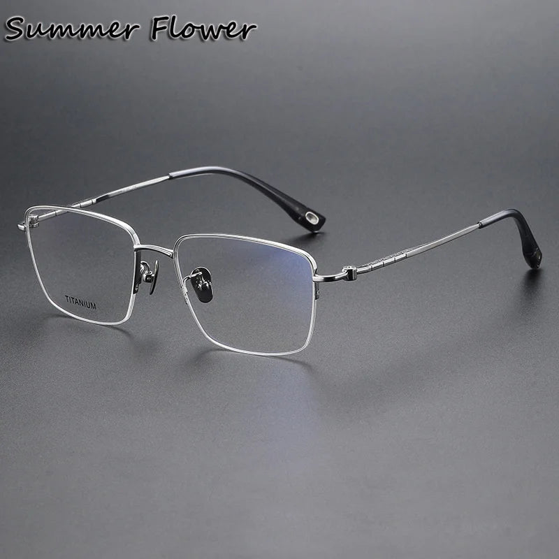 Introducing the Summer Flower Unisex Semi Rim Square Titanium Eyeglasses 80911, a perfect blend of style and functionality. Designed for both men and women, these eyeglasses offer a modern look that complements any outfit.