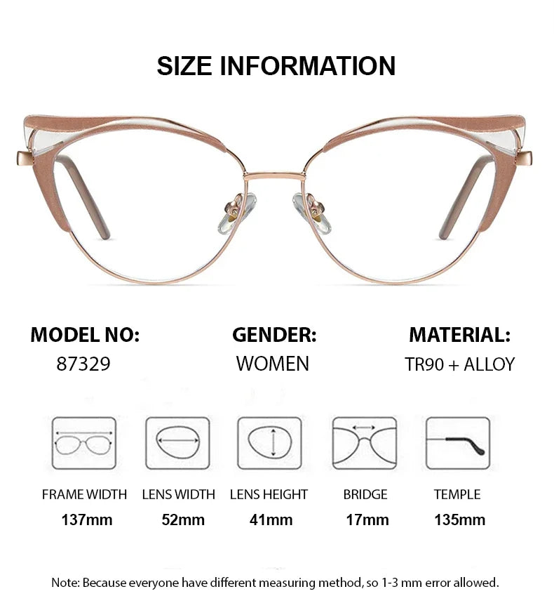 With a frame width of 137mm, these eyeglasses are specifically designed for women, balancing aesthetic appeal with functionality. The combination of TR 90 and titanium ensures that you are not only stylish but also equipped with a robust accessory.