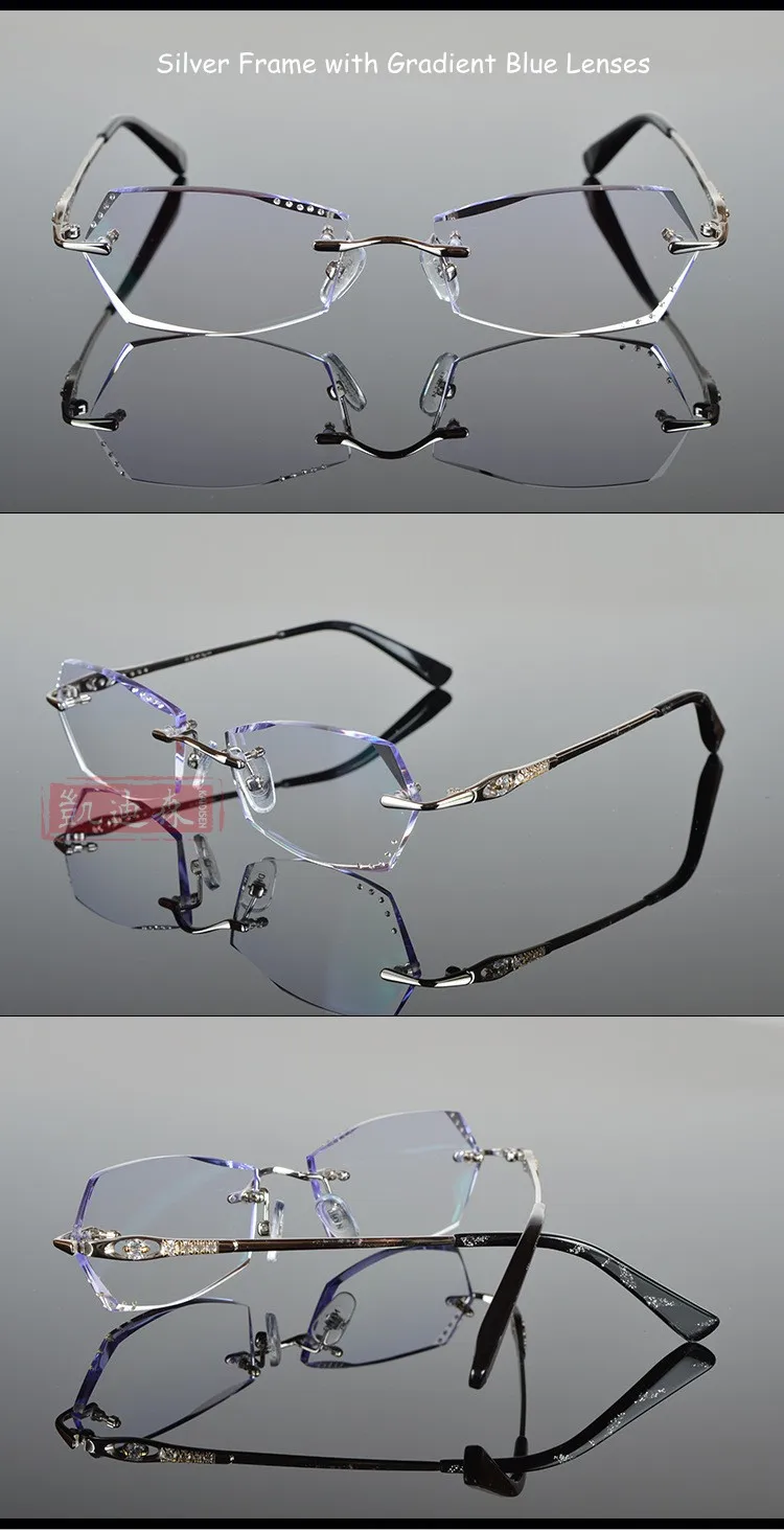 Upgrade your eyewear game with these Women's Eyeglasses Titanium Rimless Rhinestone 6011 frames. Shop now and experience the perfect blend of style, comfort, and functionality.
