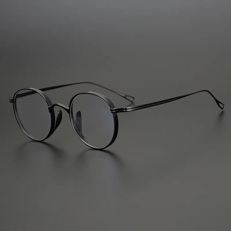 Introducing the Black Mask Unisex Full Rim Flat Top Round Titanium Eyeglasses in model number 55113. Designed for both style and practicality, these eyeglasses are made in China and feature a sleek and modern aesthetic that suits any face shape.