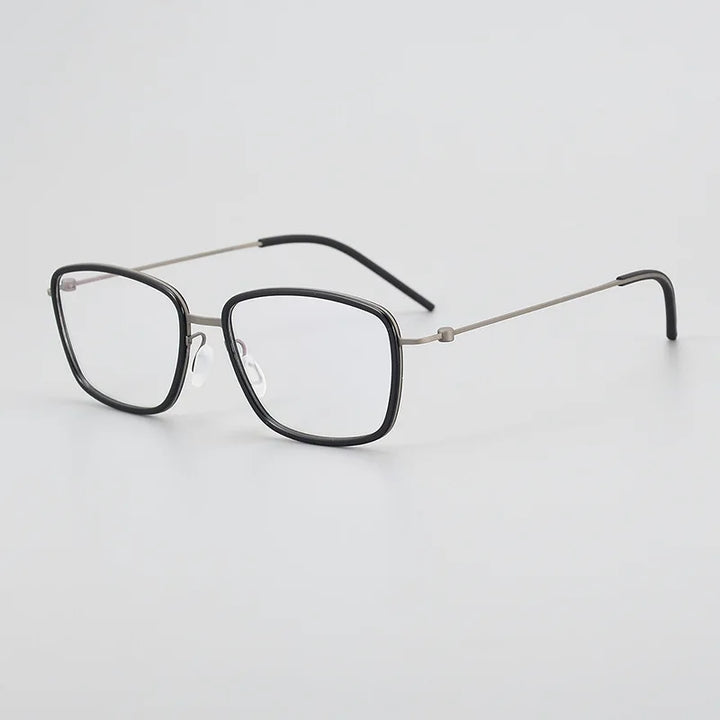 Crafted from a unique combination of Titanium and Acetate, this eyewear features screwless temples that provide both durability and comfort. The lightweight titanium offers strength without compromising on style, while the acetate adds a modern touch.