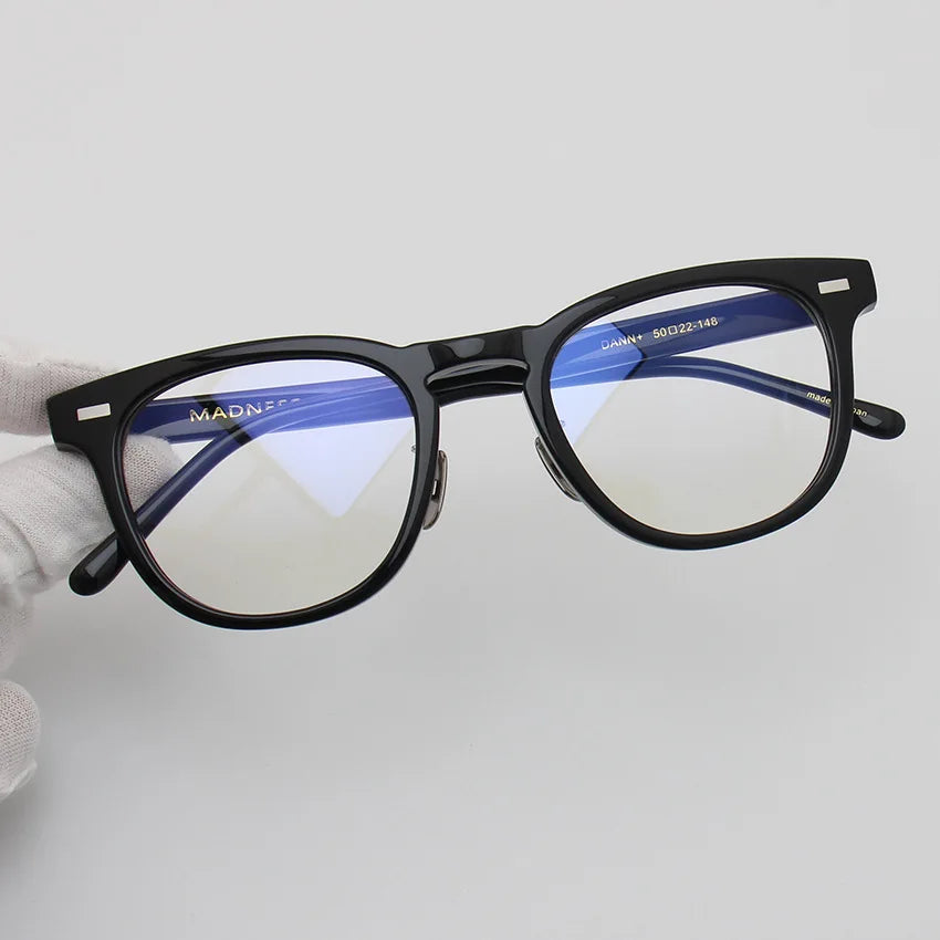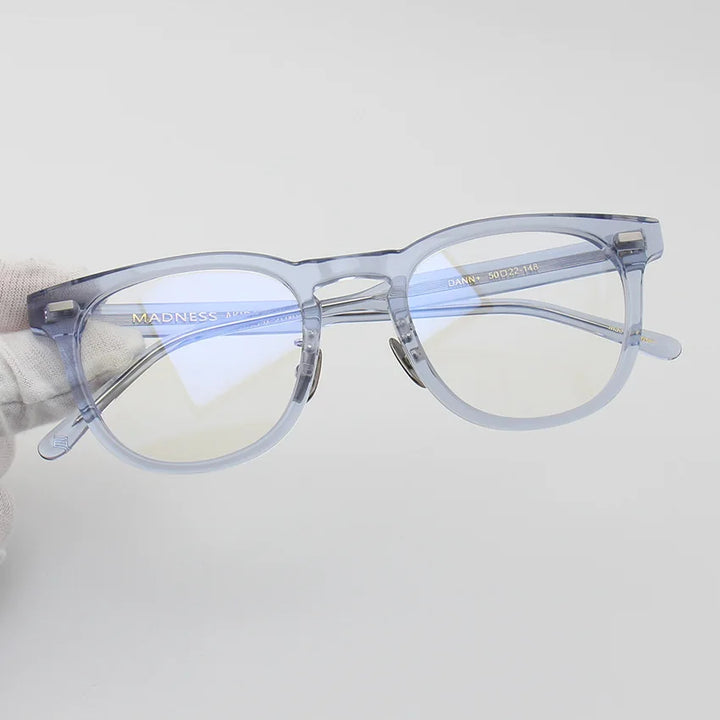 The eyeglasses feature a striking square frame that complements a variety of face shapes. Its full rim design ensures both strength and reliability while providing a bold statement. Made from high-quality acetate, the frame boasts a lightweight feel, making them comfortable for all-day wear. Additionally, the titanium accents enhance the overall look and contribute to the glasses' sturdiness.