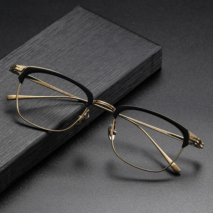 Crafted from high-quality titanium and acetate, the frame offers a lightweight yet sturdy construction. The combination of materials ensures that these eyeglasses are not only aesthetically pleasing but also resistant to daily wear and tear. The square shape of the frame adds a modern touch, making them ideal for a variety of occasions—from business meetings to casual outings.