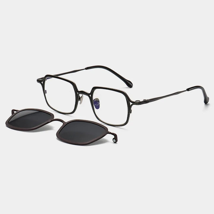 Step into style and clarity with the Black Mask Unisex Full Rim Square Titanium Eyeglasses Clip On Sunglasses. Made with high-quality titanium, these eyeglasses provide durability and a sophisticated look that suits both men and women.