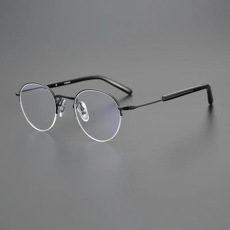 Elevate your eyewear collection with these Black Mask Unisex Semi Rim Round Titanium Eyeglasses. Order yours today and experience superior style and functionality.