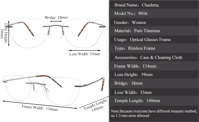The frame width measures 134mm, making it an ideal fit for a variety of face shapes. Whether you're at work, running errands, or enjoying a night out, these eyeglasses will effortlessly enhance your look.