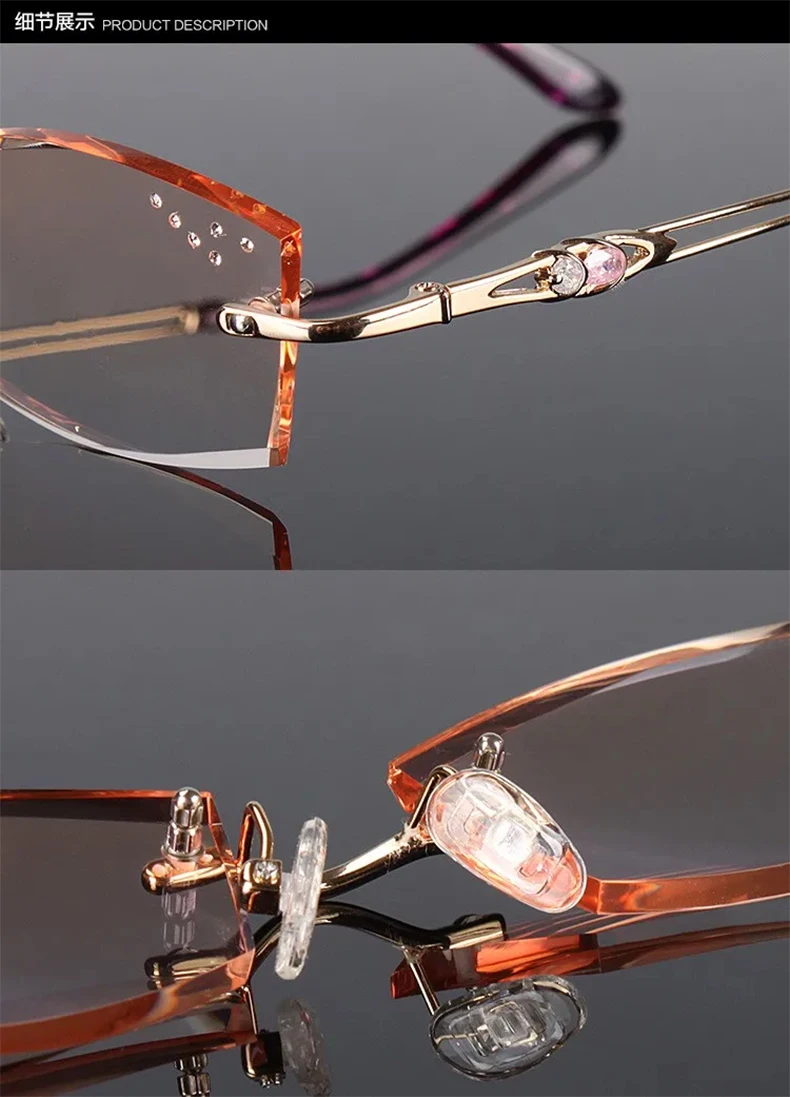 • Contemporary rimless square cat-eye lens shape that enhances your facial features.