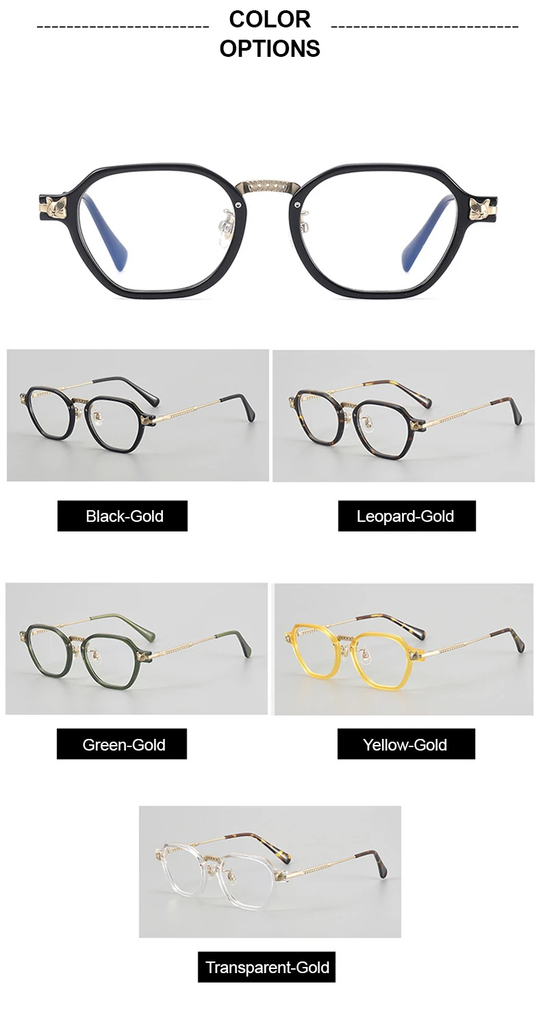 Frame Material: The frame is crafted from a blend of premium Acetate and lightweight Titanium for strength and fashion-forward style.