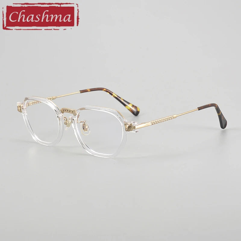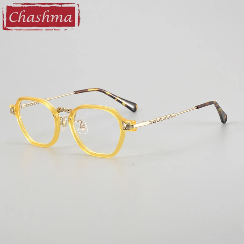 Introducing the Chashma Ochki Unisex Full Rim Polygon Titanium Acetate Eyeglasses, Model Number: 361009. These eyeglasses are perfect for those who want to combine style with functionality. Designed to cater to both men and women, these eyewear pieces offer a bold aesthetic while ensuring durability.