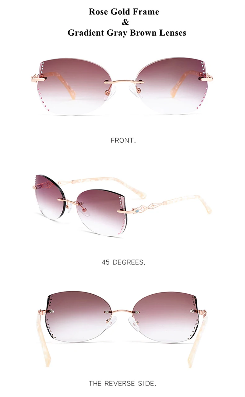 - Stylish rimless cat eye design that flatters the face and enhances your look.