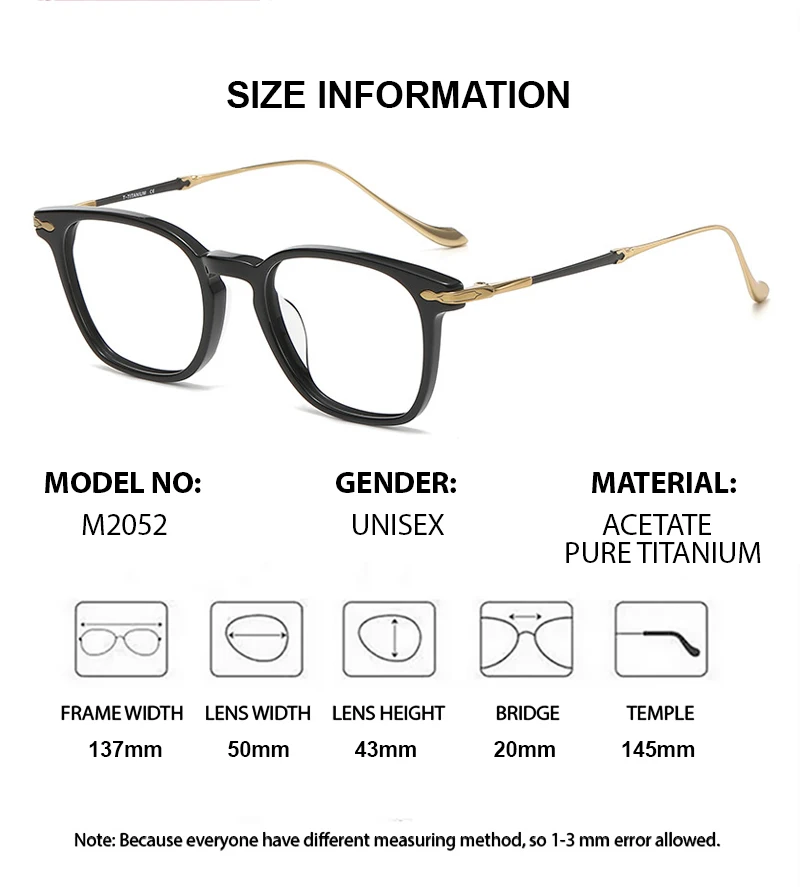 Crafted from a blend of high-quality acetate and titanium, this eyewear ensures both durability and style. The sleek square frame design provides a contemporary look, suitable for all occasions.