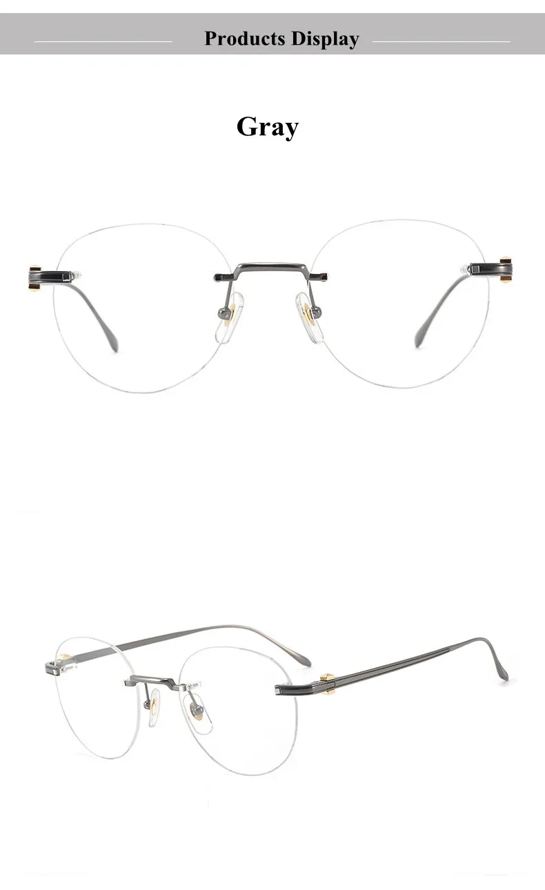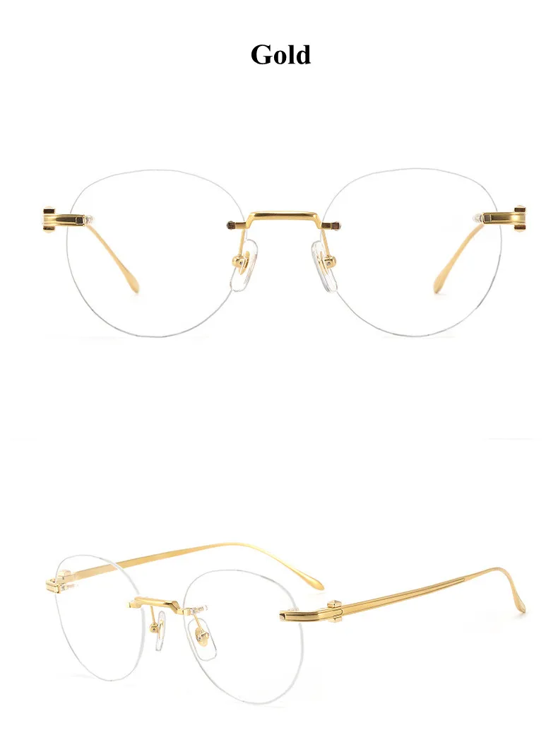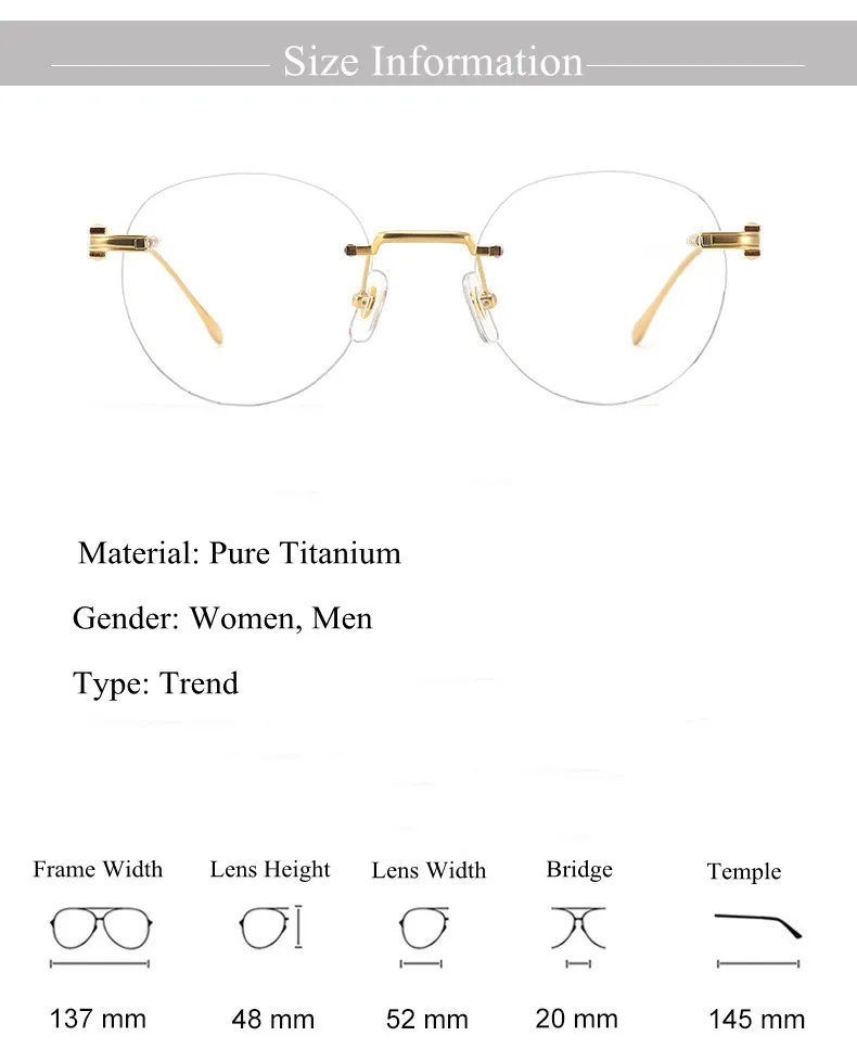 These eyeglasses feature a rimless design which offers a lightweight feel, ensuring comfort throughout the day. The frame is constructed from high-quality titanium, making it not only durable but also hypoallergenic, suitable for sensitive skin.