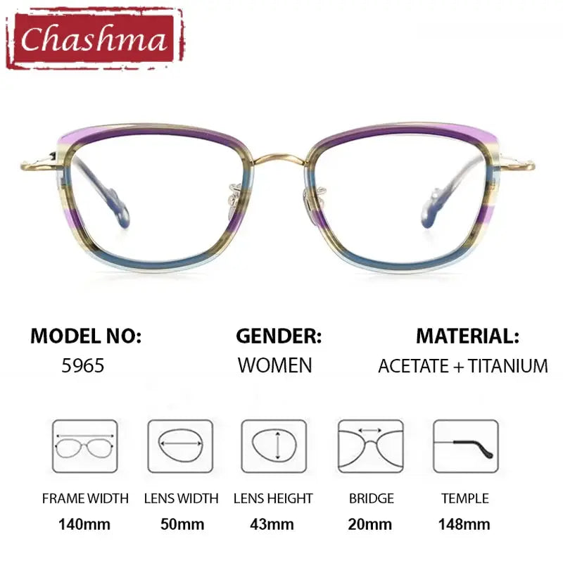 Introducing the Chashma Ottica Unisex Full Rim Square Acetate Titanium Eyeglasses, model number 775965. These stylish eyeglasses perfectly blend modern design with functional comfort, making them an essential accessory for both men and women.