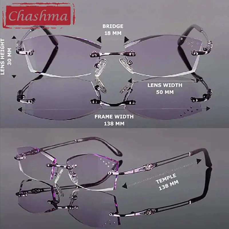 Designed specifically for women, these eyeglasses exemplify the harmony between fashion and function. The rimless construction gives them a minimalistic look, allowing you to showcase your style without overwhelming your features.