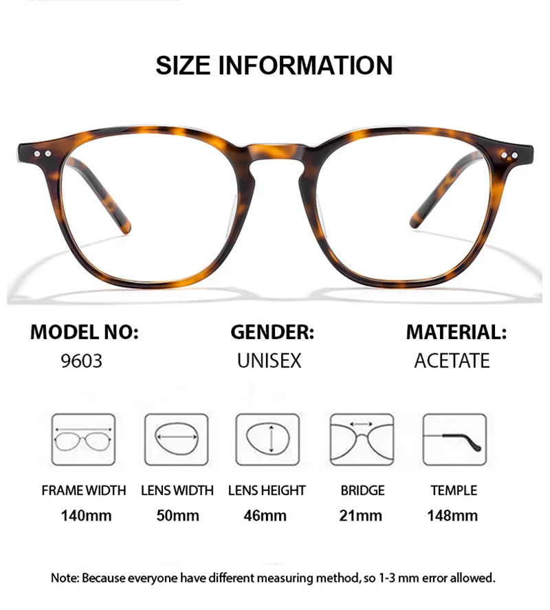 - High-quality Acetate Material: Crafted from durable acetate, these eyeglasses ensure comfort and longevity, allowing you to wear them for extended periods without discomfort.