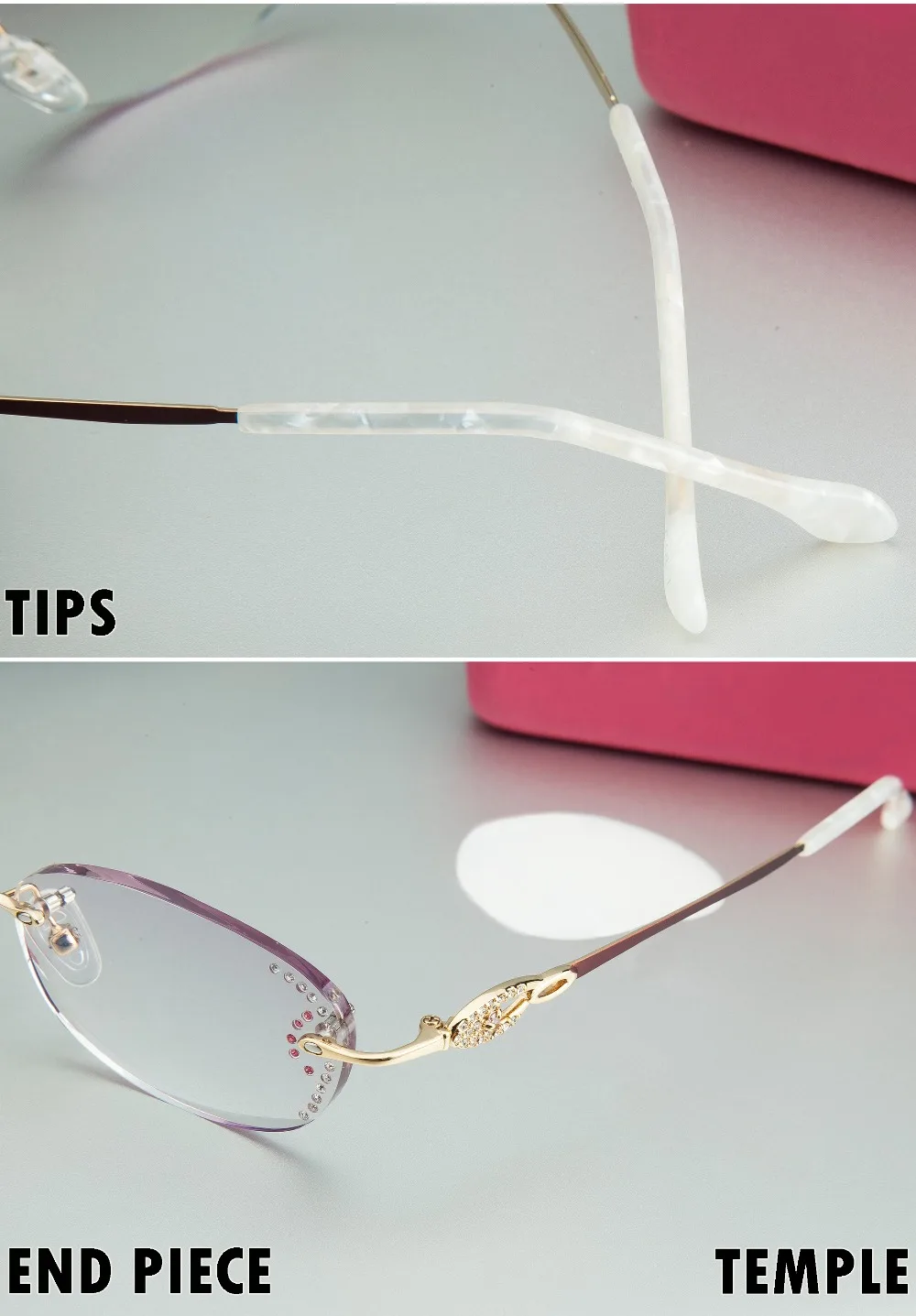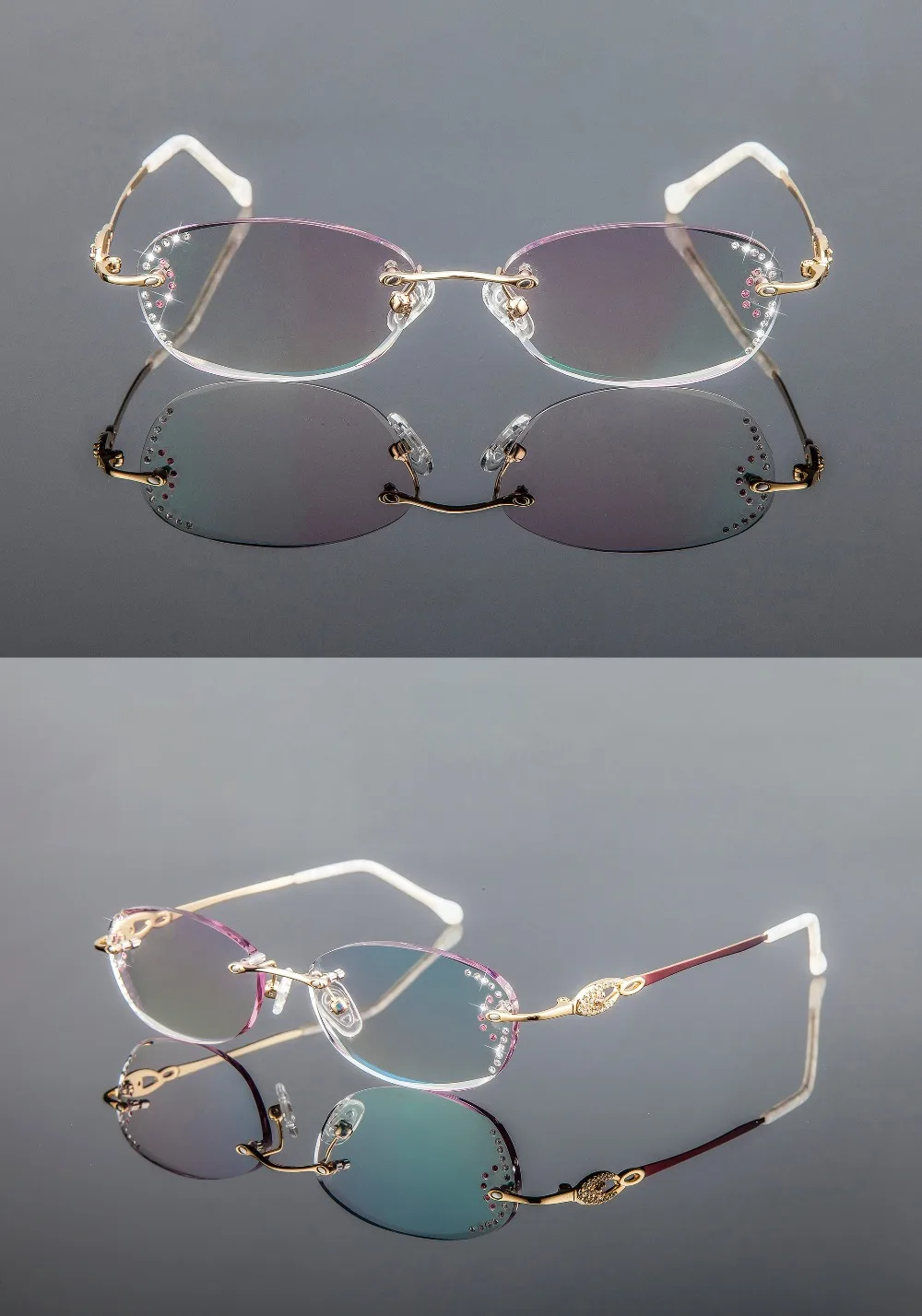 These exquisite glasses are crafted from high-quality titanium, which is not only strong but also lightweight. This means you can wear them throughout the day without discomfort. Additionally, the lenses are made from diamond cut 1.61 Index MR-8 tinted material, offering a unique and fashionable flair while ensuring clarity of vision. With a 0 diopter rating, they are perfect for those who need a stylish accessory rather than prescription lenses.