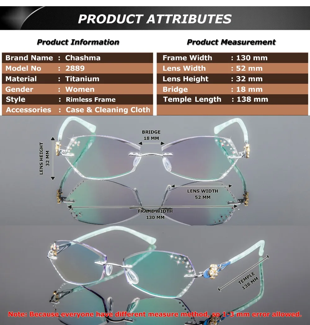 These eyeglasses are not only fashionable but also reliable. They are crafted with precision and attention to detail, ensuring a perfect fit. The Women's Eyeglasses Diamond Cutting Rimless Titanium 2889 are a perfect blend of style and practicality, making them a must-have accessory.
