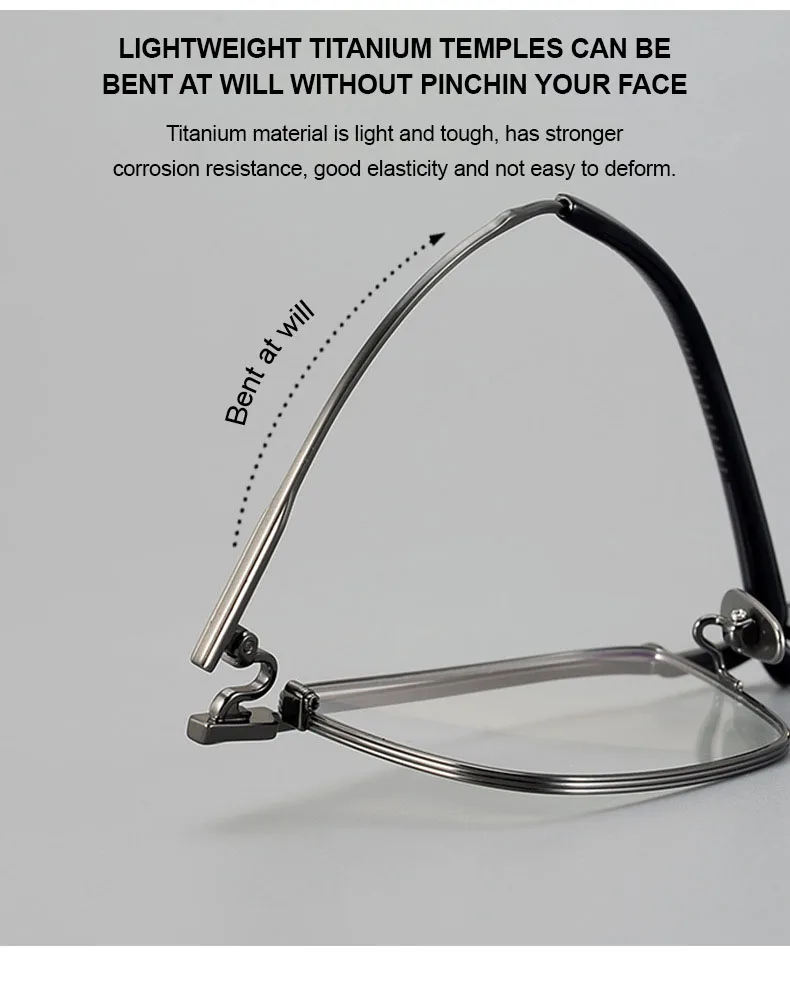 • Durable Titanium Frame: Crafted from high-quality titanium, these eyeglasses are designed to withstand daily wear while providing a lightweight feel.