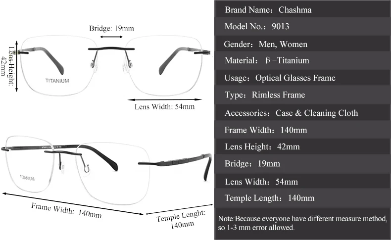 With a frame width of 140mm, these eyeglasses promise a comfortable and secure fit. The durable titanium material ensures flexibility and long-lasting wear. All of this is proudly made in Mainland China, showcasing excellent craftsmanship and quality.
