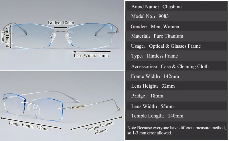 Discover the perfect blend of style, comfort, and durability with the Chashma Unisex Rimless Oval Rectangle Titanium Eyeglasses, model number 879083. Designed to suit both men and women, these eyeglasses feature a modern, rimless design that enhances your look while providing stability and comfort.