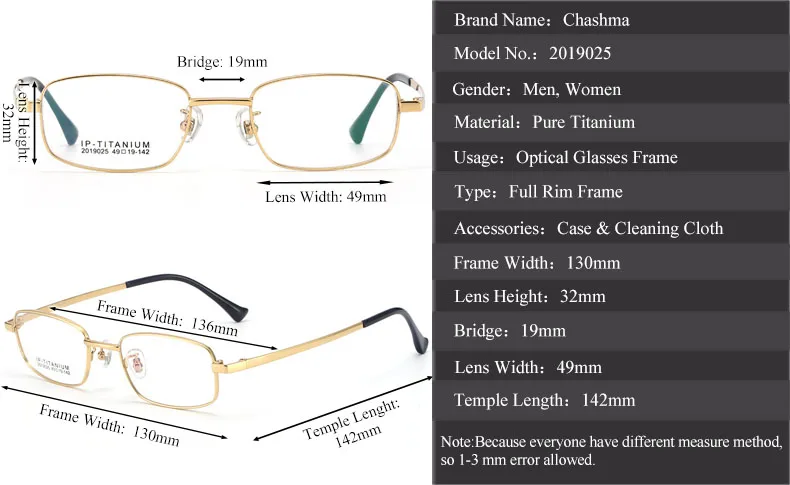 Discover the perfect blend of style and functionality with the Chashma Women's Full Rim Square Titanium Eyeglasses, model number 2019025. Crafted from premium titanium, these eyeglasses are not only lightweight but also exceptionally durable, making them a great choice for everyday wear.