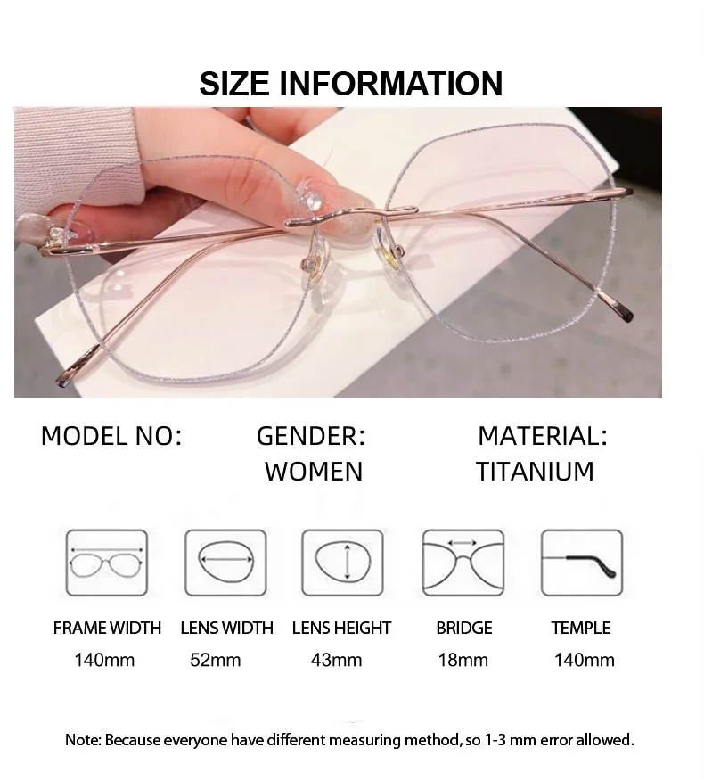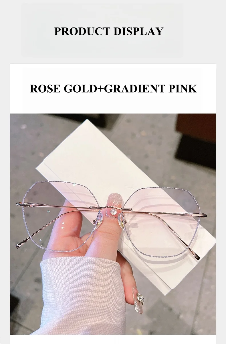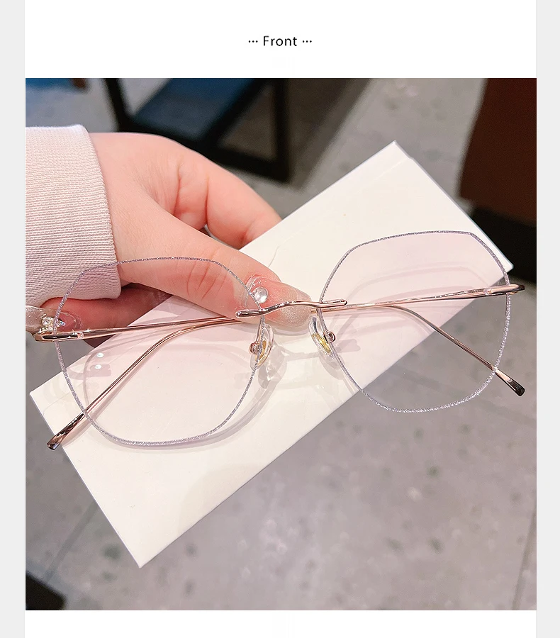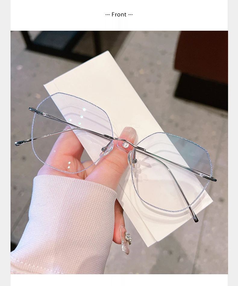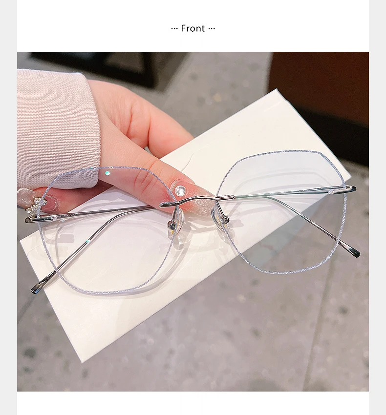- The rimless flat top polygon design adds a unique touch, making these eyeglasses a fashionable accessory for any outfit.