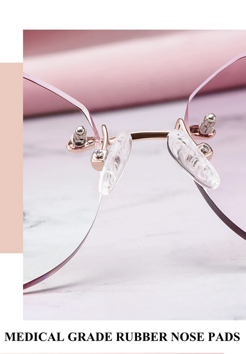 - Unique Rimless Design: The flat top round shape gives these eyeglasses a sleek and contemporary look, perfect for any outfit or occasion.