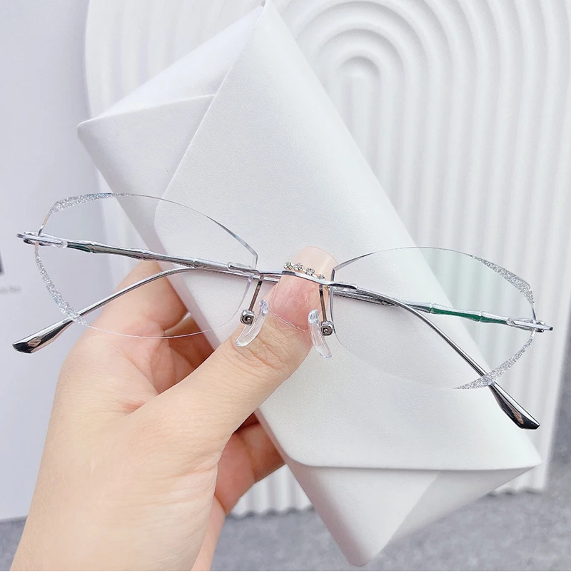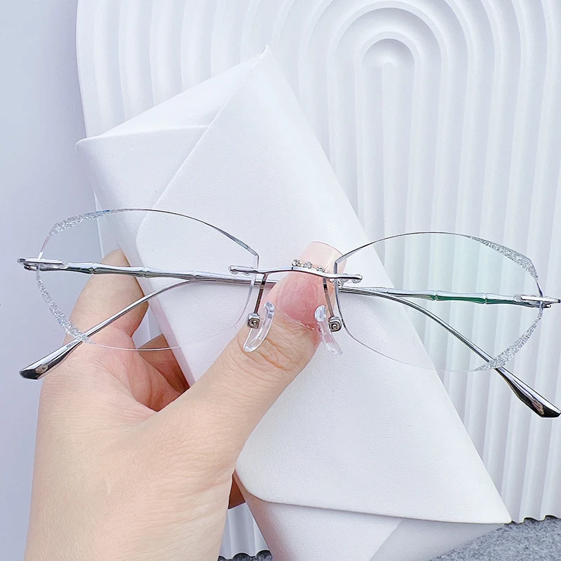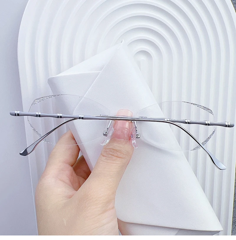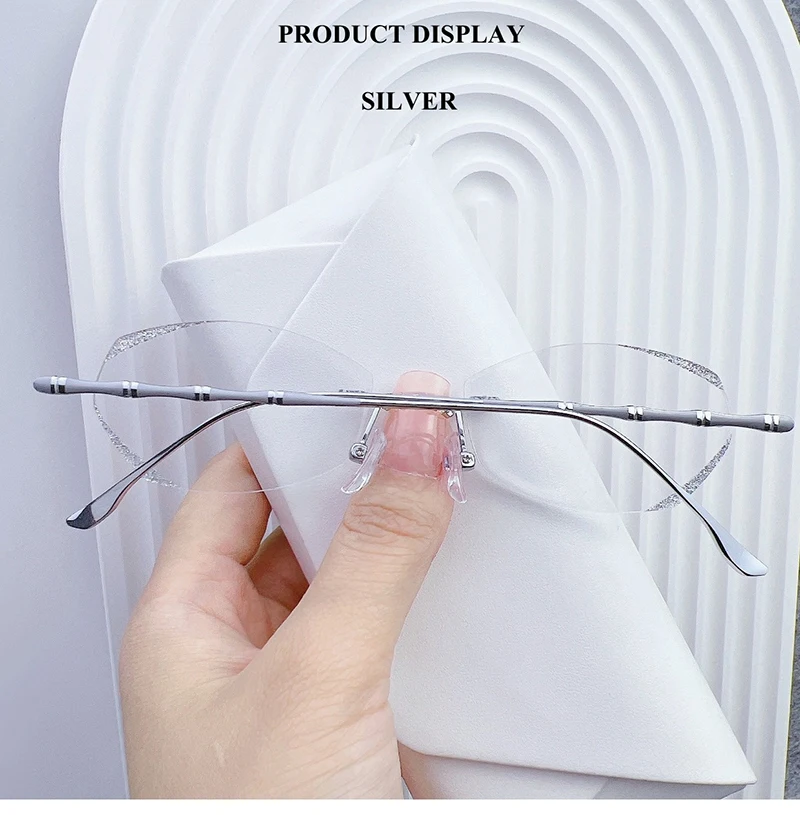 Introducing the exquisite Chashma Women's Rimless Oval Square Titanium Eyeglasses, model number 691073. Designed for style and functionality, these eyeglasses are the perfect blend of modern design and timeless elegance.