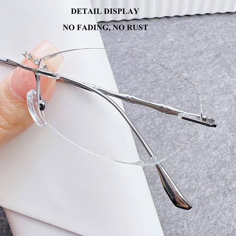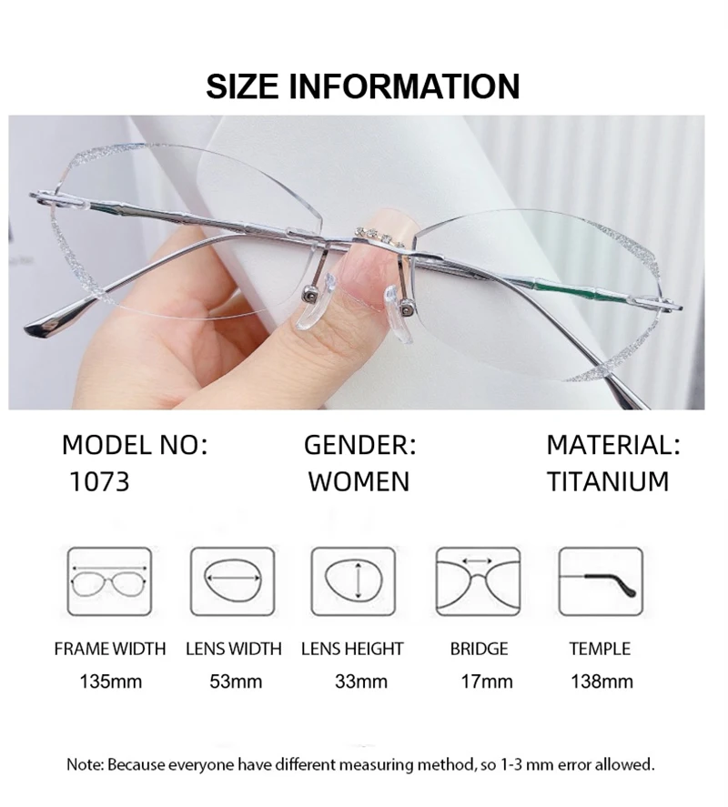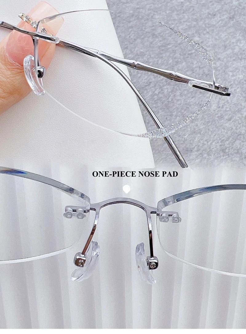 Crafted from high-quality titanium, these eyeglasses are not only lightweight but also incredibly durable. The rimless frame enhances your natural beauty while providing a sleek, sophisticated look. With a frame width of 135mm, these glasses are ideal for various face shapes, ensuring a comfortable fit.