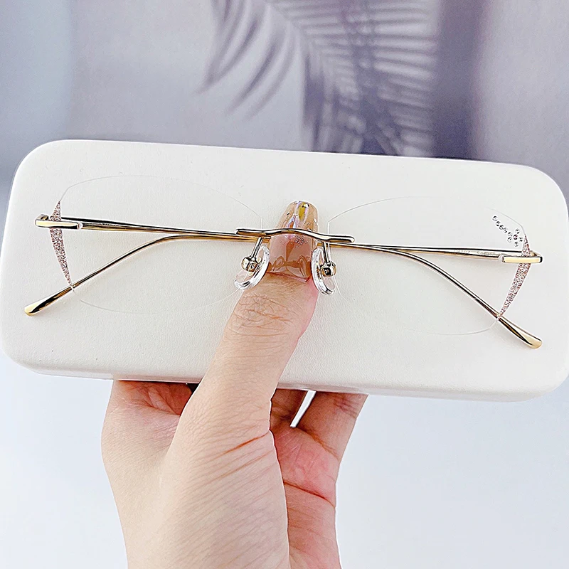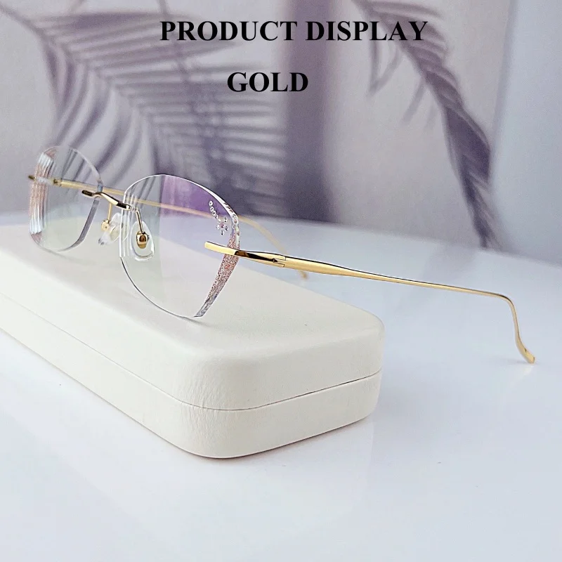 The innovative rimless design features glitter edge lenses, giving you a glamorous look that stands out. Whether you're at the office or enjoying a night out, these eyeglasses will enhance your appearance and make a statement.