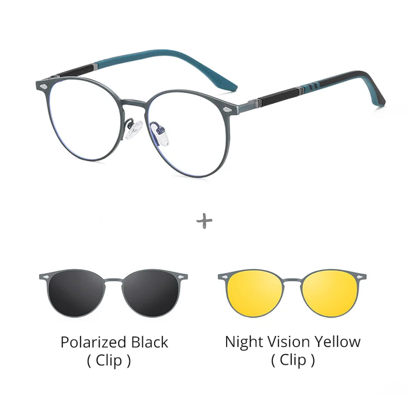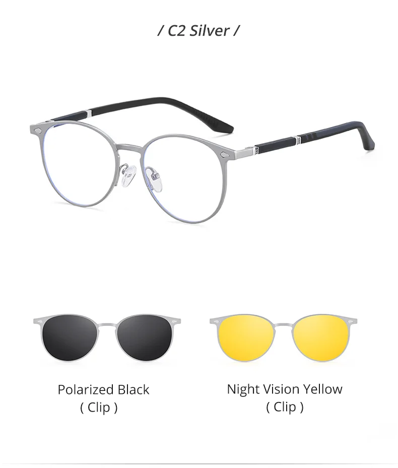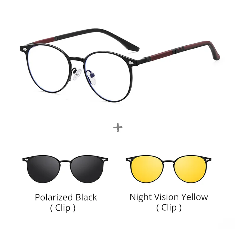 - Versatile and Practical: These eyeglasses come with a magnetic clip-on feature, allowing you to transform them into sunglasses quickly and effortlessly. Just snap on the polarized TAC clip, and enjoy the outdoors without straining your eyes.