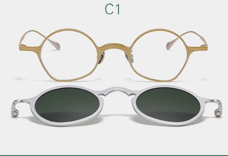 Yujo Unisex Full Rim Irregular Round Titanium Eyeglasses Clip On Sunglasses 148583