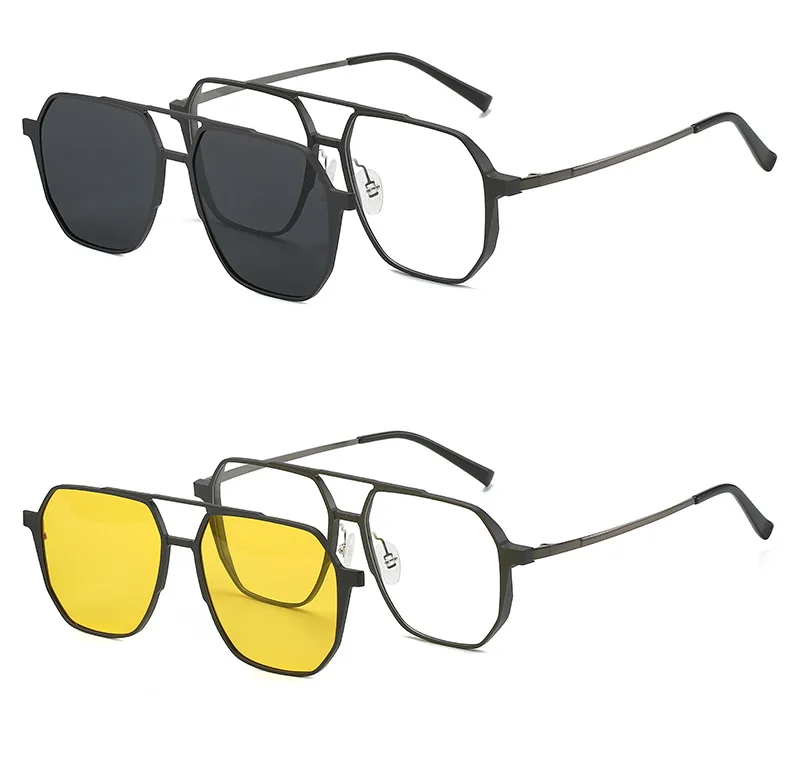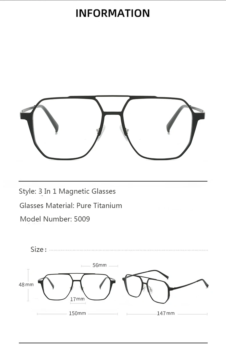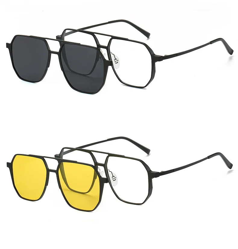 Crafted from a combination of TR 90 and high-quality titanium, these eyeglasses are both lightweight and durable. The unique double bridge design enhances their visual appeal, while the included clip-on sunglasses allow you to effortlessly switch from indoor to outdoor use.