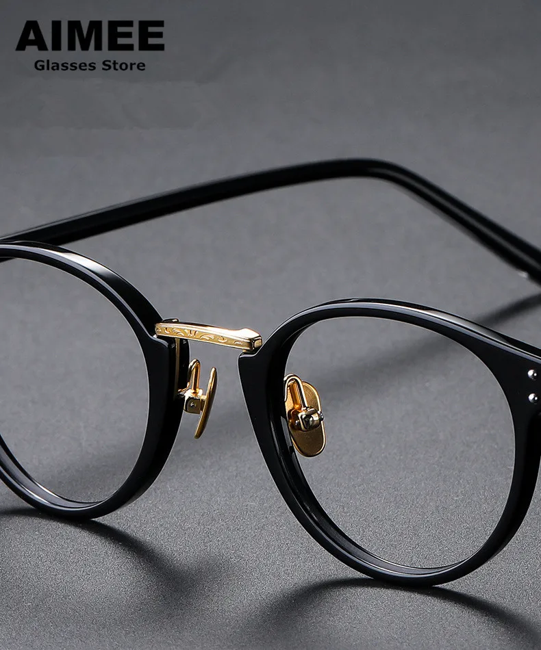 Designed by Aimee, a brand renowned for its quality and innovative eyewear, these glasses feature a striking full rim design that complements any outfit. They are constructed from a combination of premium titanium and acetate materials, ensuring durability and lightweight comfort for all-day wear.