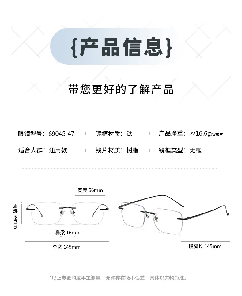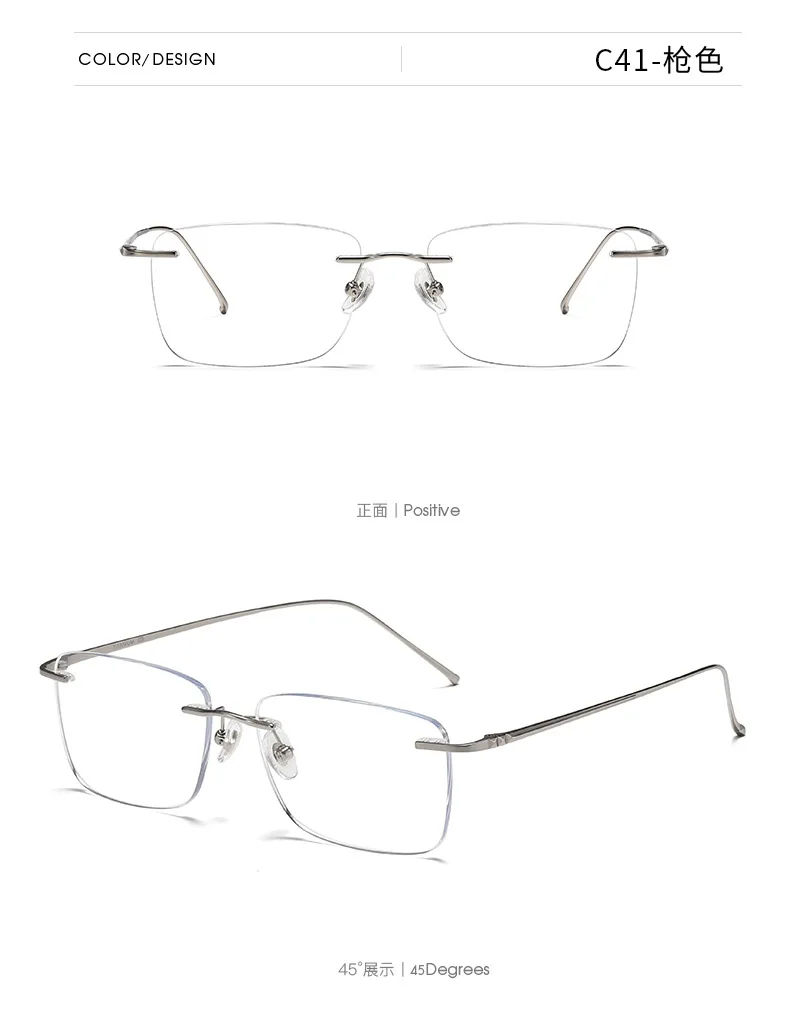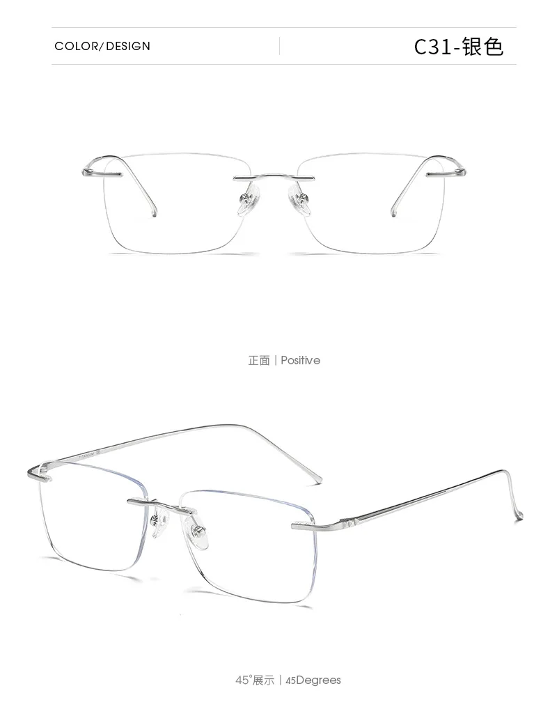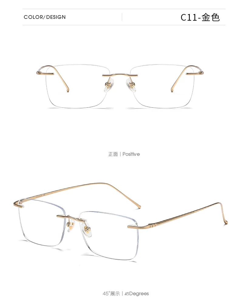 Whether you're navigating the office, running errands, or enjoying a day out, these unisex titanium eyeglasses will keep you looking sharp and feeling confident. The rimless polygon shape emphasizes modern aesthetics while offering functionality.