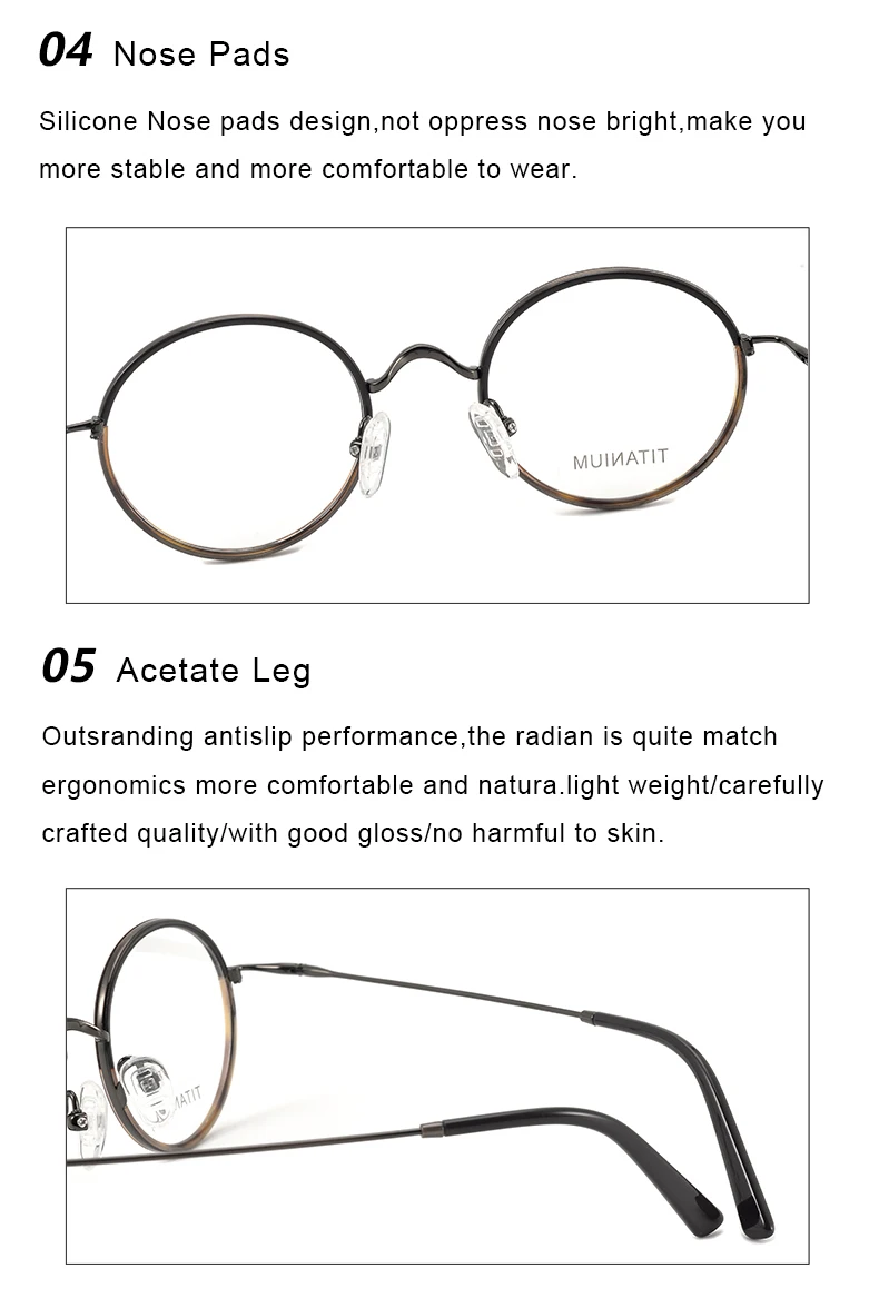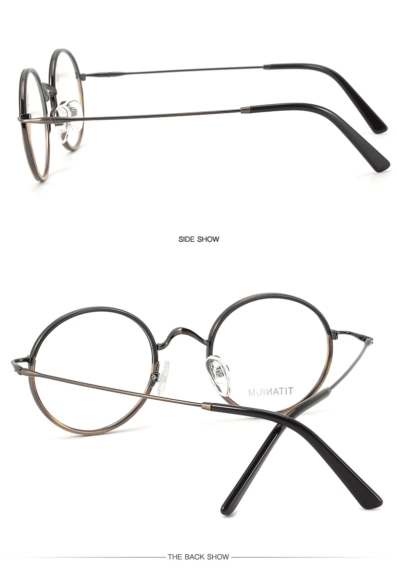 Crafted from a premium combination of Titanium and Acetate, these full-rim eyeglasses provide a lightweight and comfortable fit, perfect for all-day wear. The sophisticated round shape adds a classic touch to any outfit, making them suitable for both professional and casual settings.