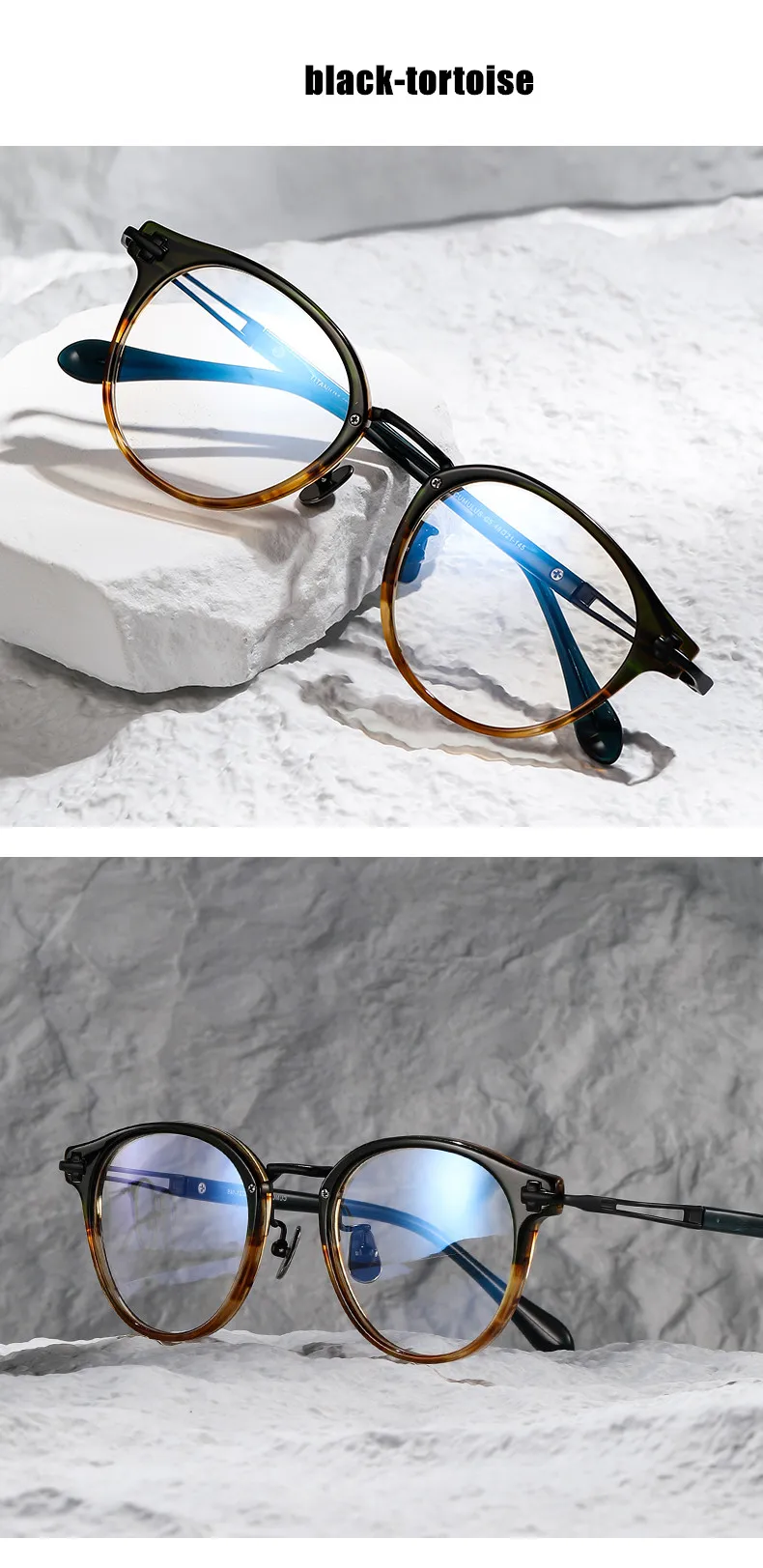 Discover the Aimee Unisex Full Rim Oval Round Titanium Acetate Eyeglasses (Model Number: 462148), a perfect blend of style, comfort, and durability. Crafted from high-quality titanium and acetate, these eyeglasses are designed to stand the test of time while providing a trendy look suitable for anyone.