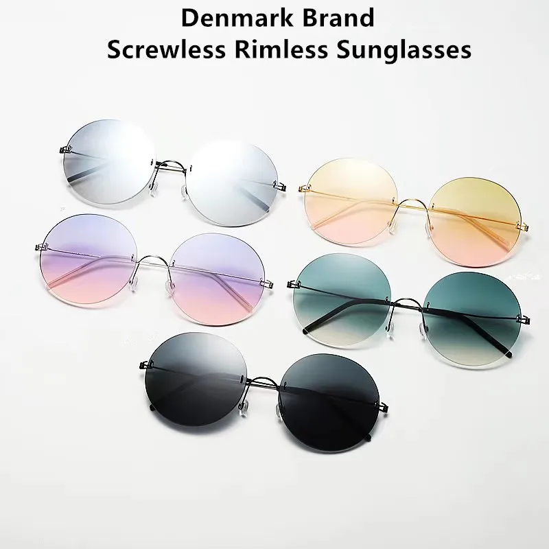 Aimee Unisex Rimless Round Titanium Screwless Sunglasses 762395